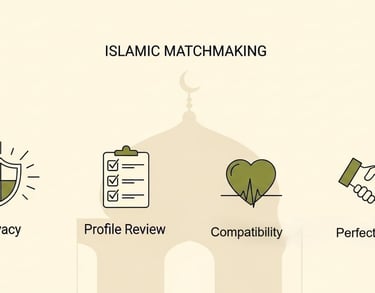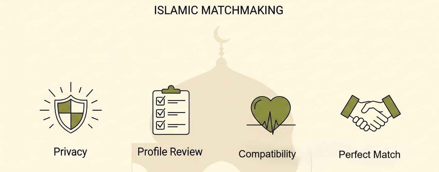 خدمة استشارية للزواج الإسلامي الجاد، تربط أصحاب النية الصادقة بطريقة محترمة، خاصة، وبإشراف بشري — بدون تصفح عشوائي أو دردشة مفتوحة.